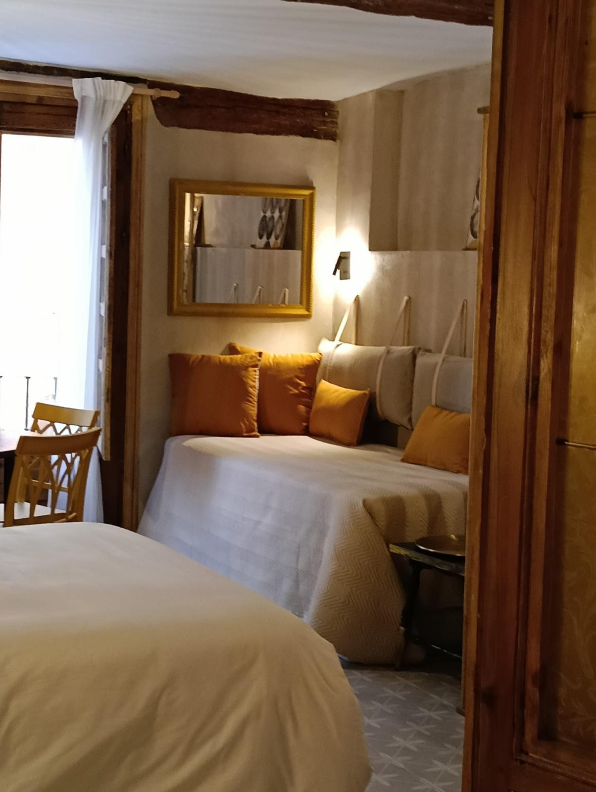 Inspirado en Urraca de Castilla, hija del rey Alfonso VIII y reina consorte de Portugal. Este apartamento evoca la serenidad y la fortaleza de una mujer que supo afrontar con prudencia los desafíos de su tiempo. Madre de dos reyes portugueses, Sancho II y Alfonso III, Urraca represento la continuidad y la templanza en una corte marcada por las tensiones sucesorias.